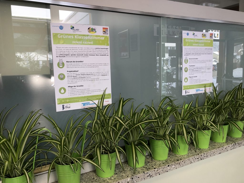 Gemeinsam mit Frau Manja Kampuš, BA von KLAR-Südkärnten, dem e5-Team der Marktgemeinde Griffen, der Gärtnerei Messner und dem Möbeldesign Tschetschonig ist es uns gelungen alle Klassen in ein „Grünes Klassenzimmer-zeleni razred“ zu verwandeln.